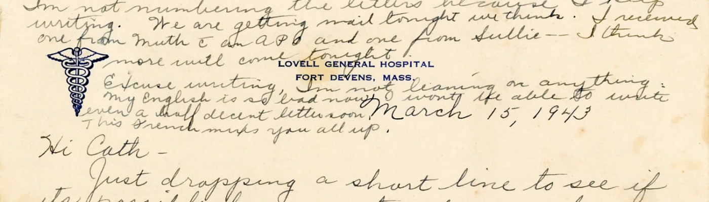 This is the first installment of five articles featuring excerpts from the letters written by a 32nd Station Hospital nurse, 2nd Lieutenant Alice E. Griffin, home to her family in the Dorchester neighborhood of Boston during 1943. For more information about Griffin, her family, and details of the transcription process, please see Introduction to the Alice Griffin Collection.