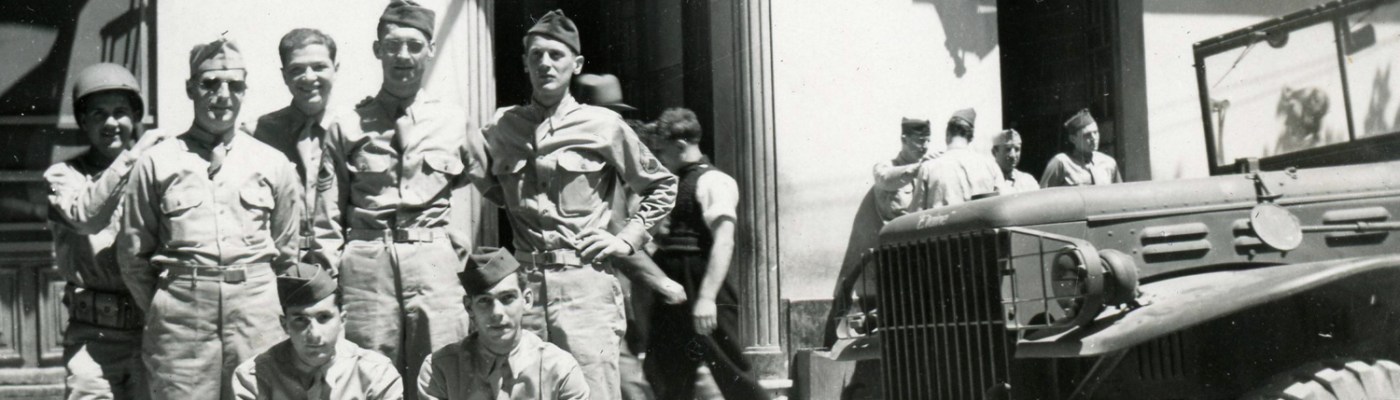 Albano was drafted and joined the U.S. Army at Camp Grant, Illinois on January 12, 1942. His occupation was listed as “Shipping and receiving clerks.” A May 1945 photograph from the collection of Master Sergeant Charles Ballard identified Albano as one of the original cadre of enlisted personnel in the unit, so he may have joined the 32nd Station Hospital as early as June 1942. He was a member of the unit by August 13, 1942, when he was promoted from private to sergeant. He was one of eight enlisted men who, with two officers, departed Camp Rucker for Fort Benning, Georgia on October 24, 1942 (two days before the main body of the unit).