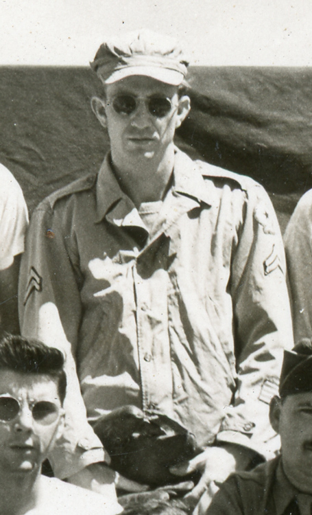 Shortly after arriving in Algeria, he was promoted to technician 5th grade on February 2, 1943. Later that year, he was promoted to sergeant on April 8, 1943. He went on detached service to the 1st Replacement Depot on May 24, 1943, returning on June 7, 1943. He was transferred to the 1st Replacement Depot on October 5, 1943.