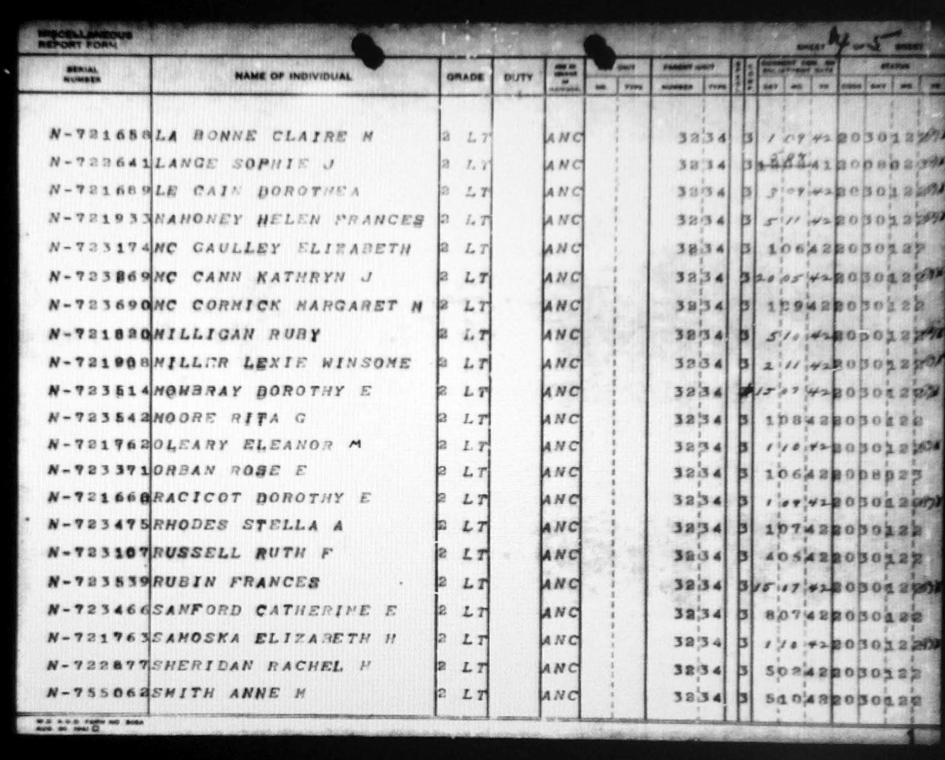 32nd Station Hospital Officer/Nurse Roster, February 28, 1943, Pg. 4