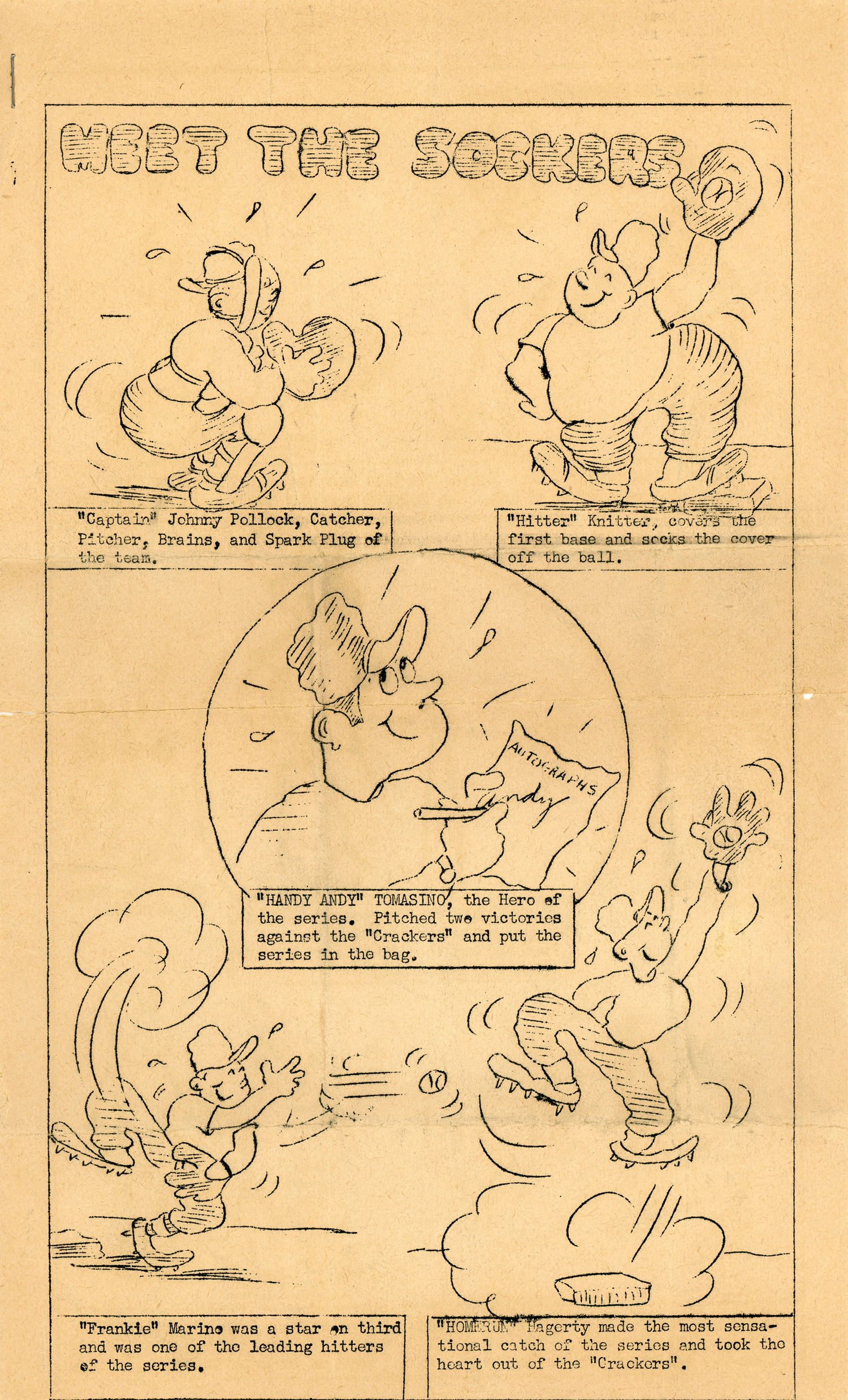 Meet the Sockers Pg. 1 Meet the Sockers: An illustrated 32nd Station Hospital baseball roster almost certainly drawn by Don Sudlow (Courtesy of the Knitter Family)