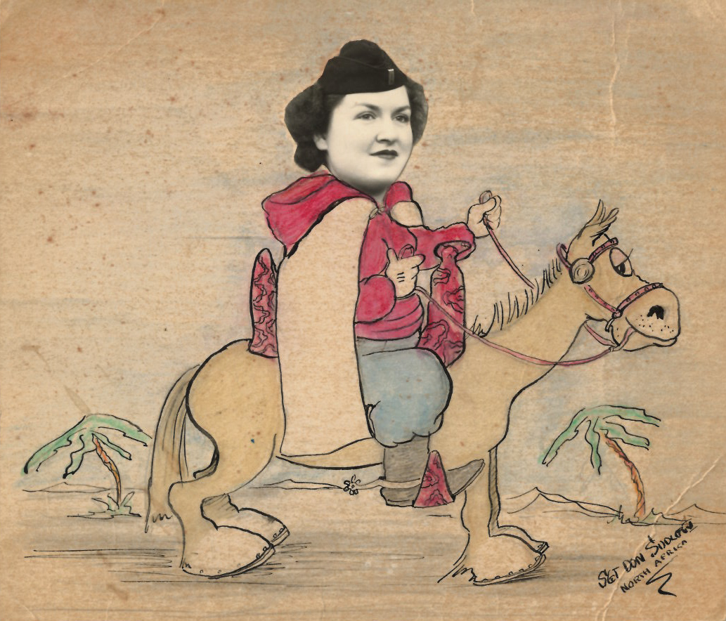 The first known mixed media Don Sudlow art, featuring Frances Rubin (Mann). The unit’s nurses were on friendly terms with local Spahis (North African cavalry serving in the French Army), who often let them go horseback riding with them.