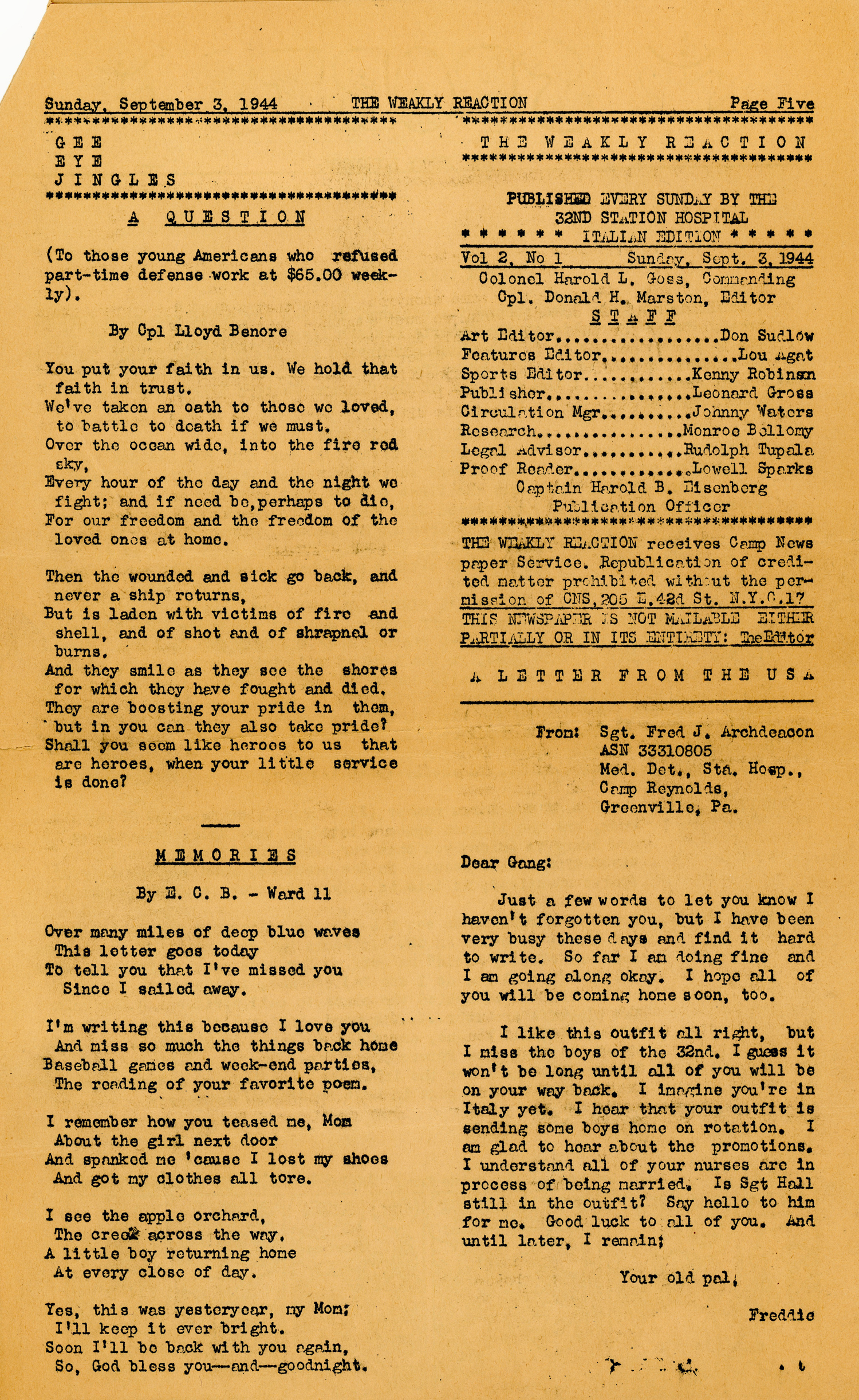 Weakly Reaction Sept 3, 1944 Pg. 5